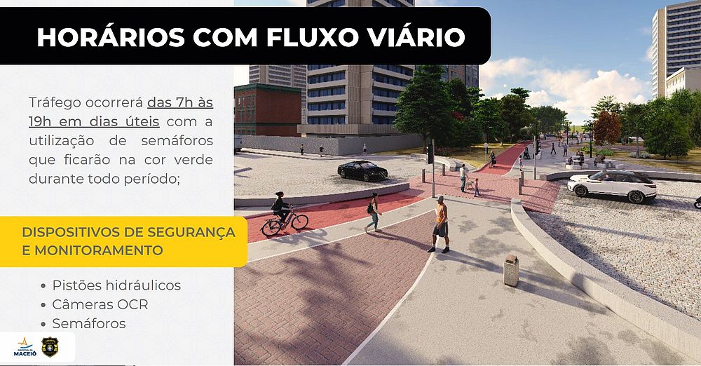 Como vai funcionar? - Para garantir a segurança viária, a liberação dos veículos será permitida apenas das 7h às 19h, em dias úteis. Agentes da SMTT vão atuar na fiscalização a área, enquanto semáforos ficarão na cor verde durante todo período de passagem liberada para veículos e vermelho nos demais dias e horários.