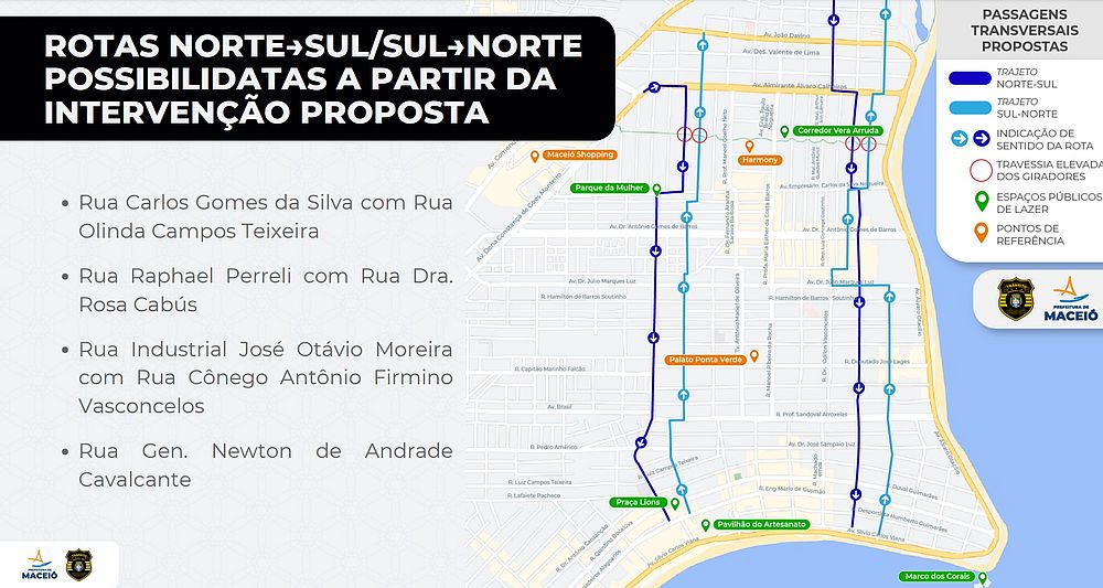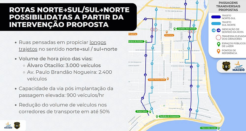 “A malha viária que liga os bairros de Cruz das Almas a Ponta Verde possui 18 vias no trajeto Leste-Oeste e Oeste-Leste, mas no sentido Norte-Sul e Sul-Norte são apenas cinco possibilidades de rotas [...] A principal diretriz é que as intervenções causem o menor impacto possível na região, mas trazendo importantes melhorias para o trânsito", explicou o superintendente municipal de transportes e trânsito, André Costa.