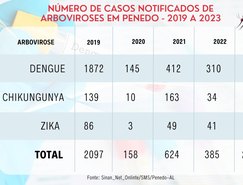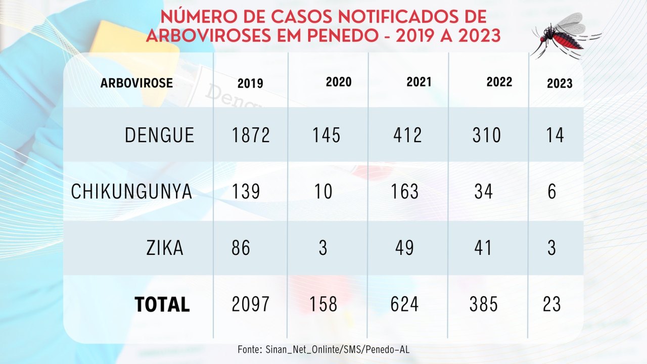 O trabalho incansável da Prefeitura de Penedo, por meio da Secretaria Municipal de Saúde (SEMS), resultou em uma significativa diminuição nos casos de Dengue, Chikungunya e Zika ao longo do ano de 2023. O município registrou apenas 23 casos, sendo 14 de dengue, 6 de Chikungunya e 3 de Zika, além da identificação de 737 focos de dengue em residências.