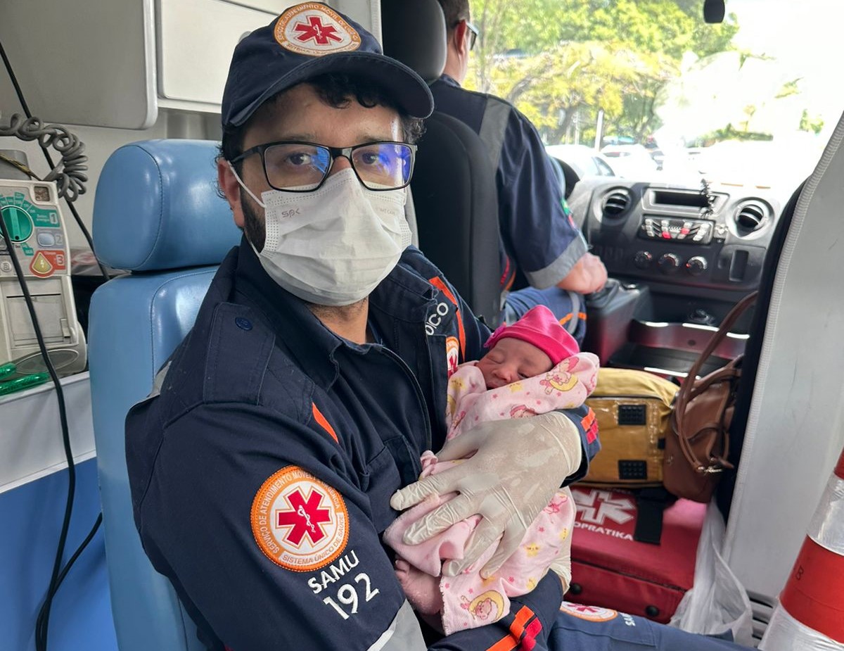 O médico socorrista do Samu, Whaston Araújo, relata que a mãe, Luana Oliveira da Silva, de 21 anos, já com a idade gestacional de 40 semanas, sentiu fortes contrações, sem tempo hábil para que sua família a levasse para a maternidade. “Mãe e bebê estão muito bem. A recém-nascida estava em bom estado geral, sem desconforto respiratório e com boa vitalidade”, disse.