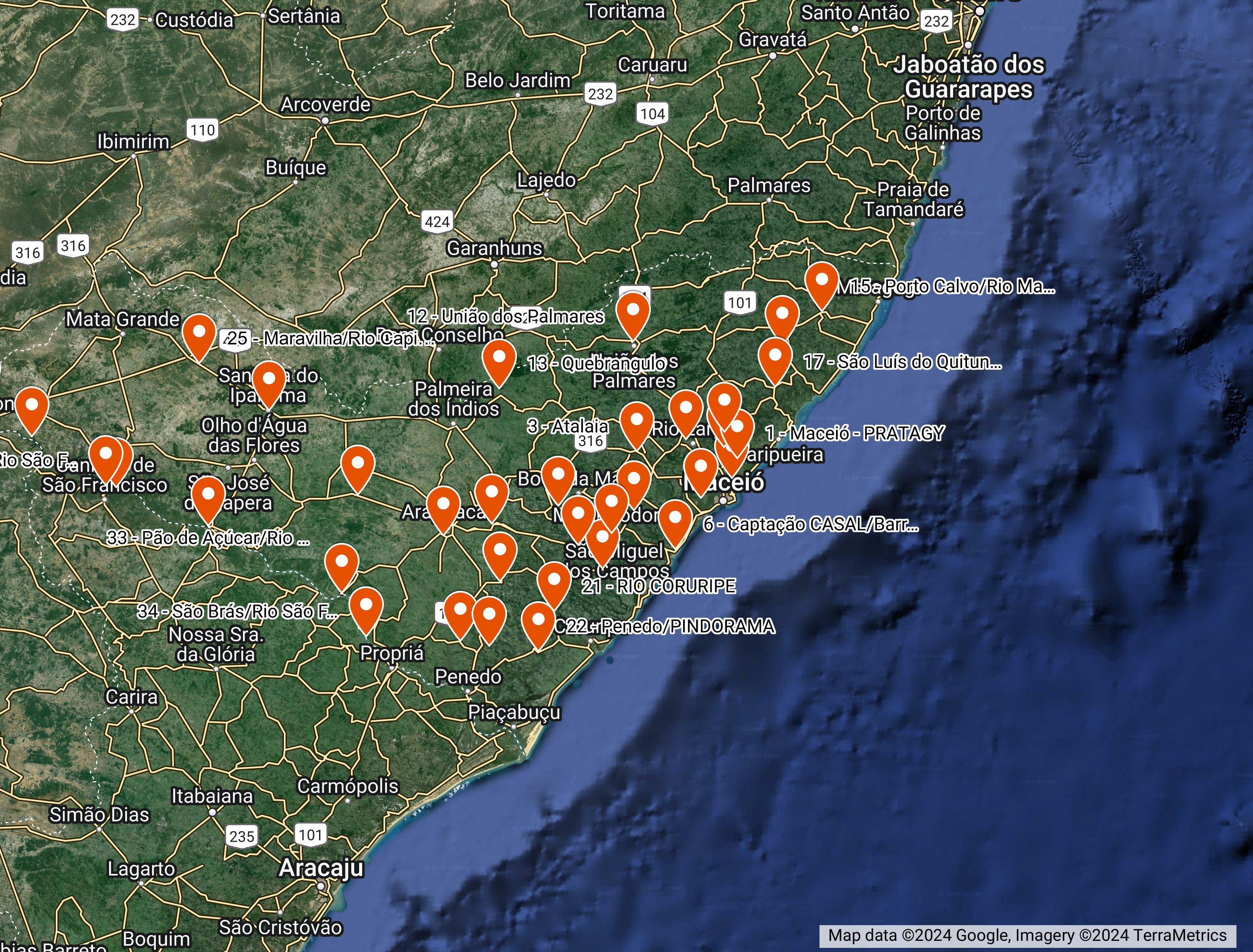 O programa abrange municípios como Maceió, Atalaia, Rio Largo, Barra de São Miguel, São Miguel dos Campos, Marechal Deodoro, Anadia, Campo Alegre, União dos Palmares, Quebrangulo, Porto Calvo, Matriz de Camaragibe, São Luís do Quitunde, Girau do Ponciano, Jaramataia, Arapiraca, Limoeiro de Anadia, Coruripe, Penedo, Jequiá da Praia, Santana do Ipanema, Maravilha, São Sebastião, Igreja Nova, Delmiro Gouveia, Piranhas, Pão de Açúcar, São Brás e Traipu, incluindo mananciais como os rios Pratagy, Mundaú e Manguaba.