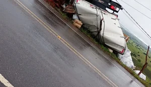 Caminhão tomba na AL-110 após colisão com poste em Coité do Noia