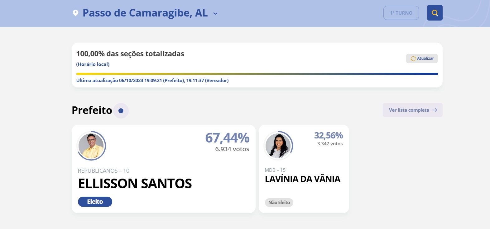 Confirmada pelo Tribunal Regional eleitoral (TRE-AL) de Alagoas a cassação dos mandatos do prefeito de Passo de Camaragibe, Ellisson Santos da Silva, e do vice, Adeildo Petrúcio dos Santos.