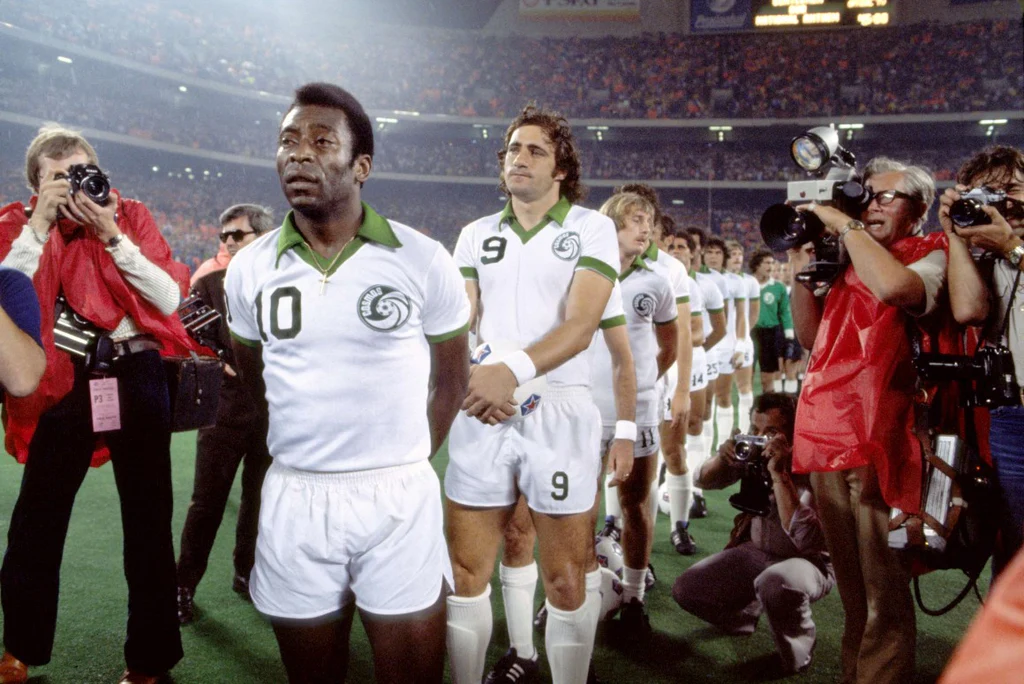 Depois de 19 anos vestindo a camisa do Santos, Pelé decidiu finalmente jogar no exterior. Fazendo apenas partidas festivas pelo clube do litoral, o rei aceitou proposta do New York Cosmos e foi jogar nos Estados Unidos – se tornando o atleta mais bem pago do mundo. Até o presidente estadunidense Gerald Ford participou das negociações, com objetivo de estimular o desenvolvimento do ‘soccer’ no país.
