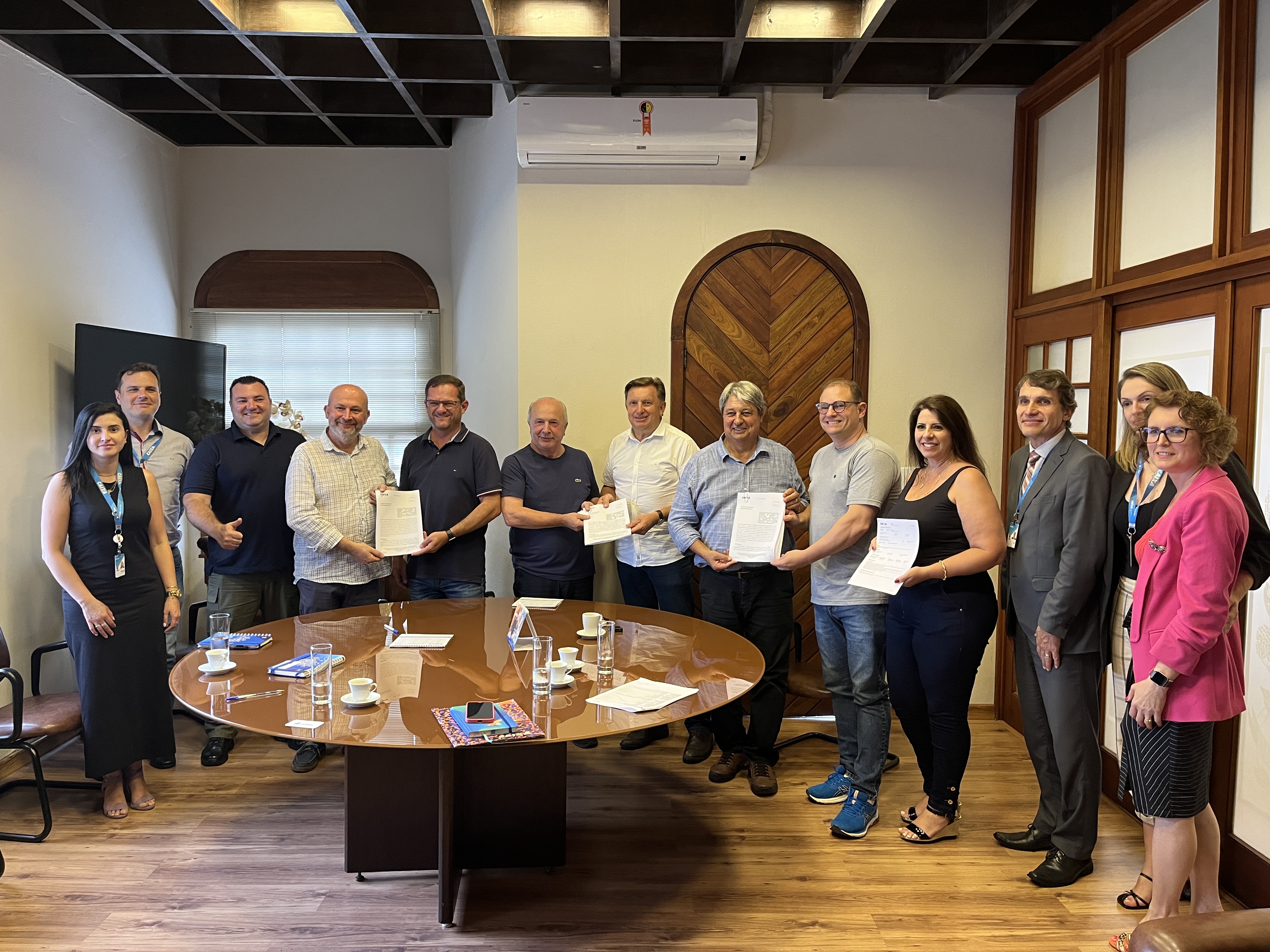 Na tarde desta terça-feira (10), o prefeito Nestor Tissot, o secretário de Obras e Serviços Urbanos, Rafael Ronsoni e o secretário de Governança e Desenvolvimento Integrado, Germano Junges, se reuniram com representantes da Caixa Econômica Federal para assinar três contratos de repasses que somam R$13 milhões de reais que serão destinados para obras de infraestrutura.