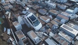 Carro vai parar em cemitério após ciclone extratropical no RS
