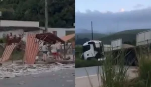 Carreta desgovernada destrói ponto de ônibus e deixa dois feridos graves na BR-101