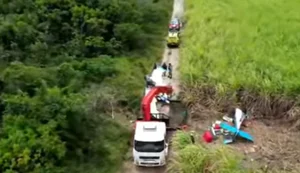 Avião com 200 kg de cocaína que caiu em Coruripe começa a ser removido da plantação