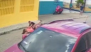 Casal cai de moto após crianças soltarem bola na pista em Campo Alegre