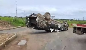 Viatura do Pelopes capota após colisão com carro na AL-115 em Arapiraca
