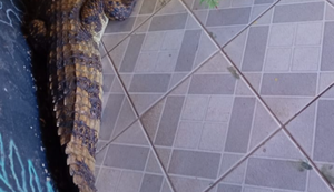 Funcionários de açaiteria encontram jacaré na porta do trabalho em Marechal Deodoro