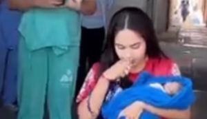Mãe cumpre promessa de joelhos após filho receber alta na Maternidade Santa Mônica