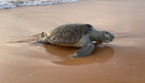 Tartaruga-verde adulta é encontrada morta na praia de Jacarecica