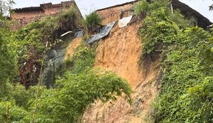 Deslizamento de terra atinge e força interdição de casas na Comunidade Bolão, em Maceió