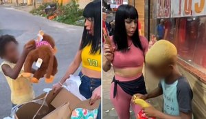 Influencers entregam banana e macaco de pelúcia a crianças negras