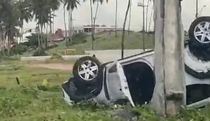 Carro capota ao bater em poste caído na pista na Av. Assis Chateaubriand