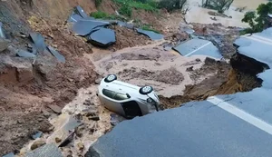 Carro é engolido, mas casal sai Ileso após fortes chuvas em Santa Catarina