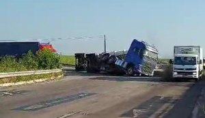 Carreta tomba na BR-101, em São Miguel dos Campos