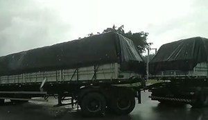 Carreta atravessada na pista deixa trânsito parado na BR-424