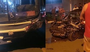Acidente entre carro e ônibus deixa um homem preso às ferragens em Santa Amélia