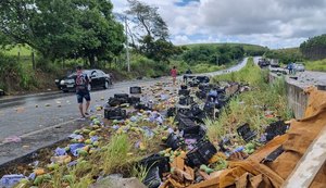 Caminhão de frutas tomba em pista molhada e deixa dois mortos