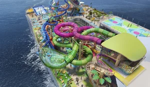 Maior navio de cruzeiros do mundo terá piscina suspensa e seis toboáguas a bordo
