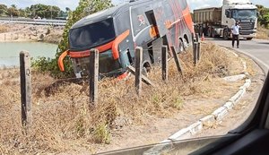 Passageiros de ônibus ficam à beira de ribanceira em São Miguel dos Campos